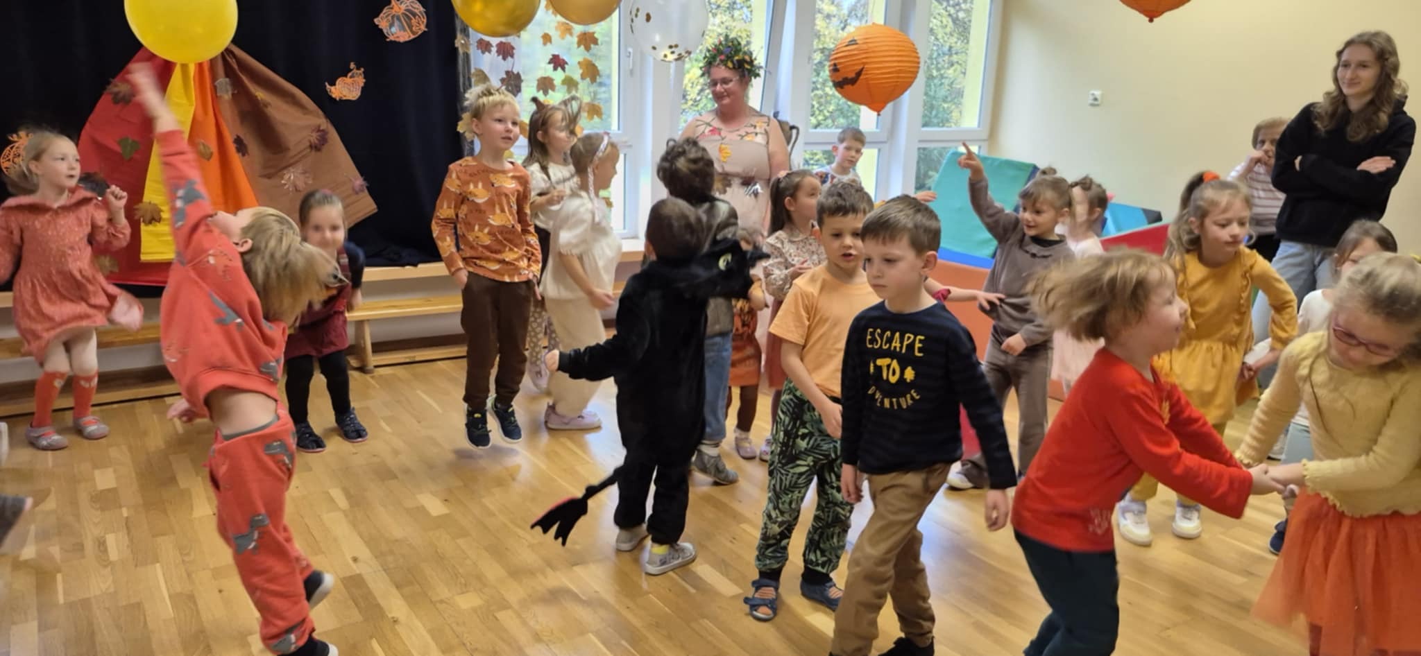 W naszym przedszkolu zapanowała iście magiczna aura, a wszystko to za sprawą wyczekiwanego przez wszystkich „Balu Jesieni”. To wyjątkowe wydarzenie wypełniło nasze sale radosnym śmiechem, muzyką i niesamowitą energią, zamieniając zwykły dzień w kolorowe widowisko. Przedszkolaki zaprezentowały się w zachwycających strojach, inspirowanych darami natury – od szeleszczących, złotych liści i dostojnych muchomorków, aż po urocze leśne zwierzęta, takie jak zwinne wiewiórki czy sprytne liski. Wspólnie bawiliśmy się przy dźwiękach skocznych rytmów, biorąc udział w licznych konkursach i tanecznych korowodach, a klimatyczne dekoracje pełne wrzosów i dyni sprawiły, że każdy poczuł ciepły, jesienny nastrój. Składamy ogromne podziękowania wszystkim Dzieciom za ich wspaniałą energię, a Rodzicom za zaangażowanie w przygotowanie bajkowych kostiumów. To był piękny dzień pełen niezapomnianych wrażeń, który pokazał nam, jak radosna i barwna potrafi być ta pora roku!