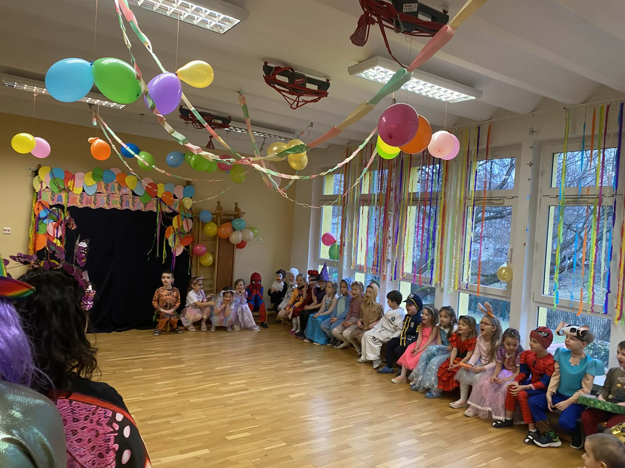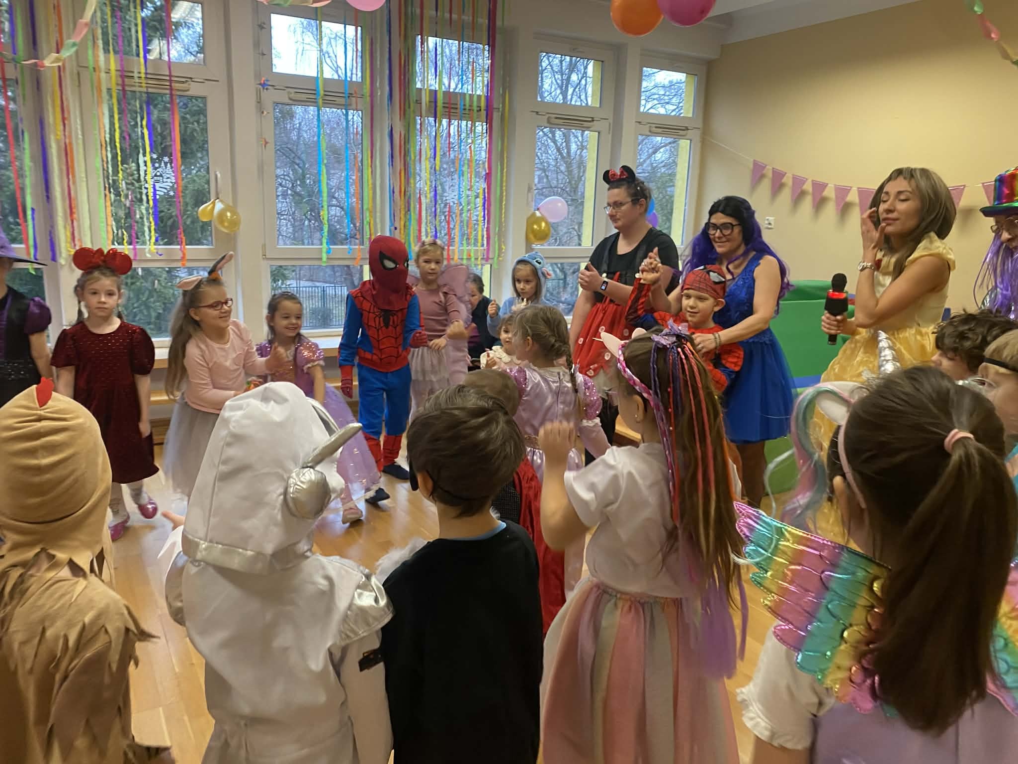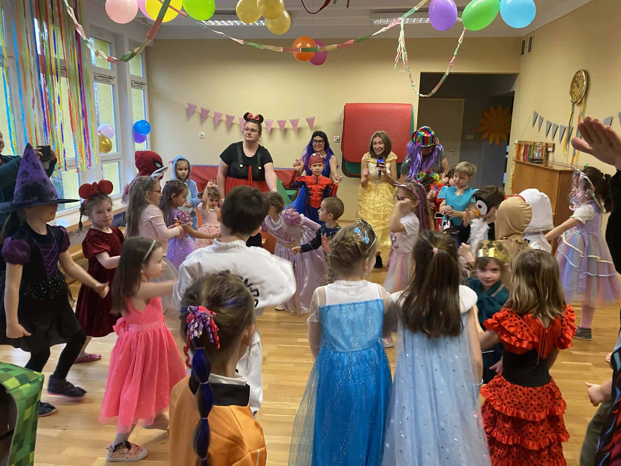 Tegoroczny Bal Karnawałowy był wyjątkowy, a wszystko to za sprawą niesamowitej energii i kreatywności uczestników. Gościliśmy na parkiecie całą galerię postaci: od dzielnych superbohaterów i pięknych księżniczek po urocze zwierzątka i tajemniczych piratów. Wspaniałą zabawę poprowadziły niezastąpiona Pani Margarita i Pani Viola.